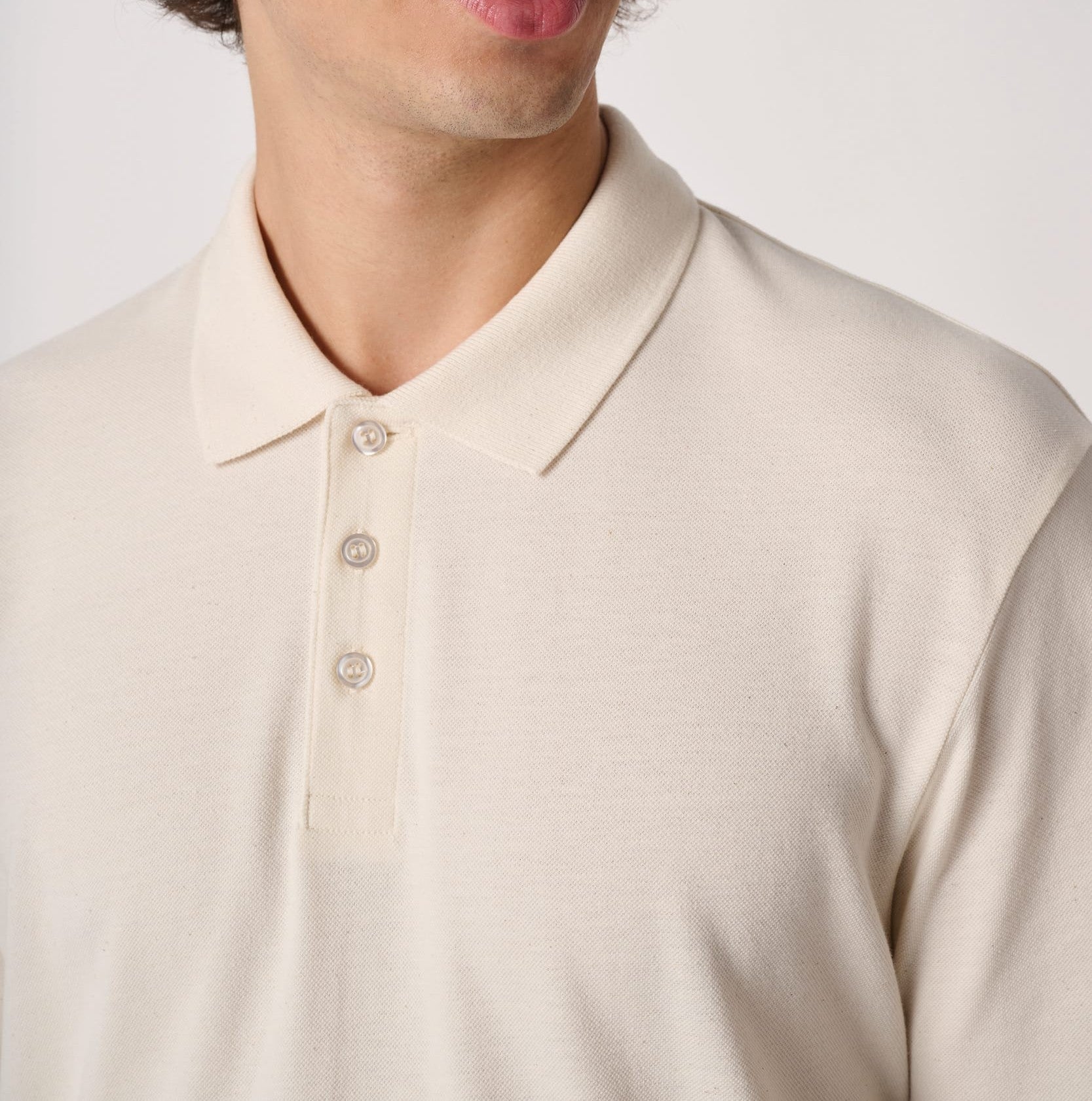 - Cuello con tres botones, canalé en cuello.